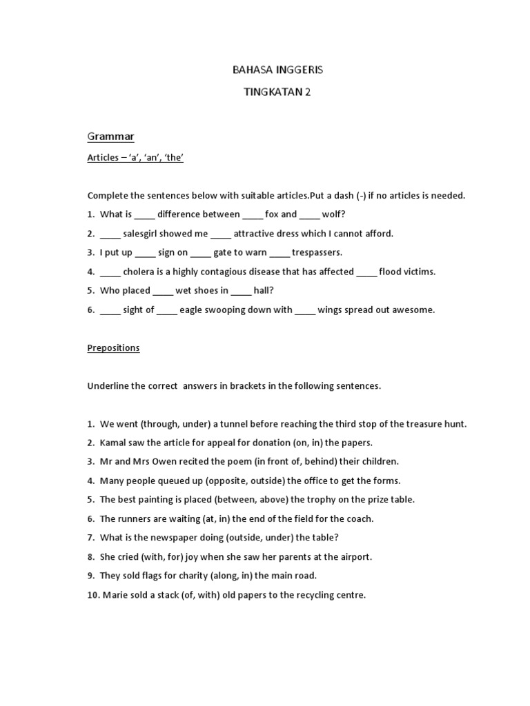 Bahasa Inggeris Tingkatan 2 Pdf
